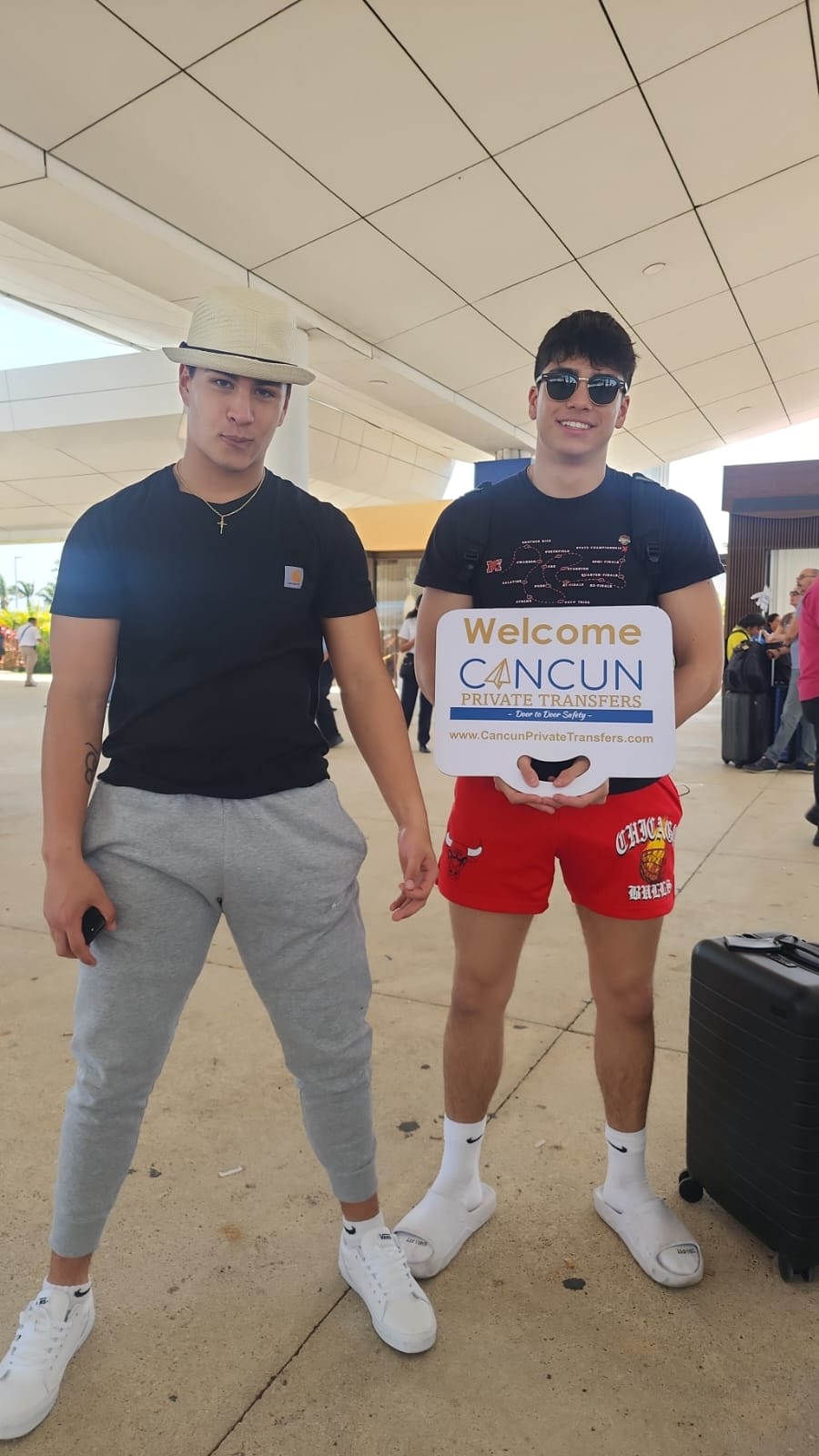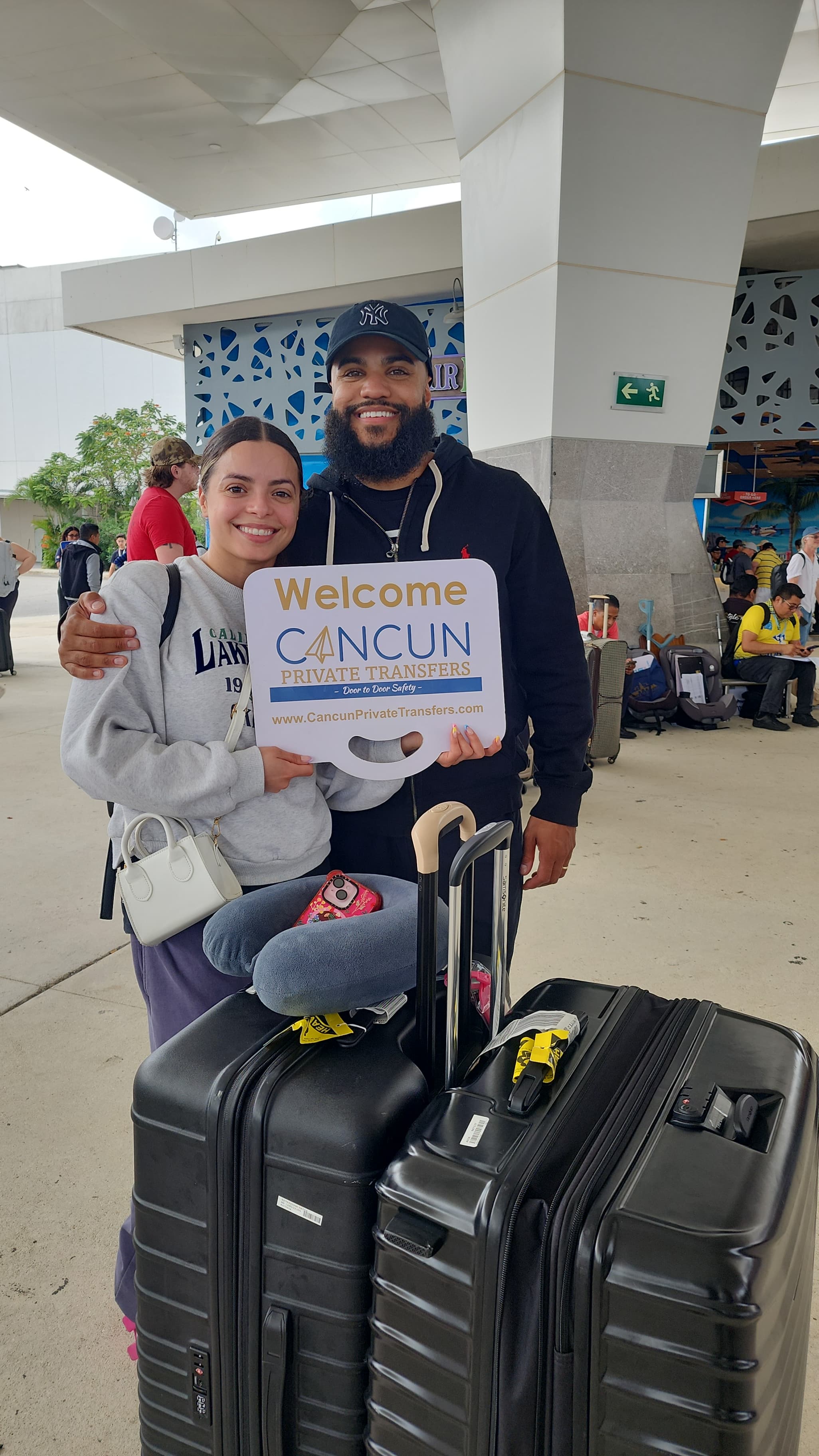 Bilingual team in identifiable uniforms with direct WhatsApp contact to guide you from baggage claim.